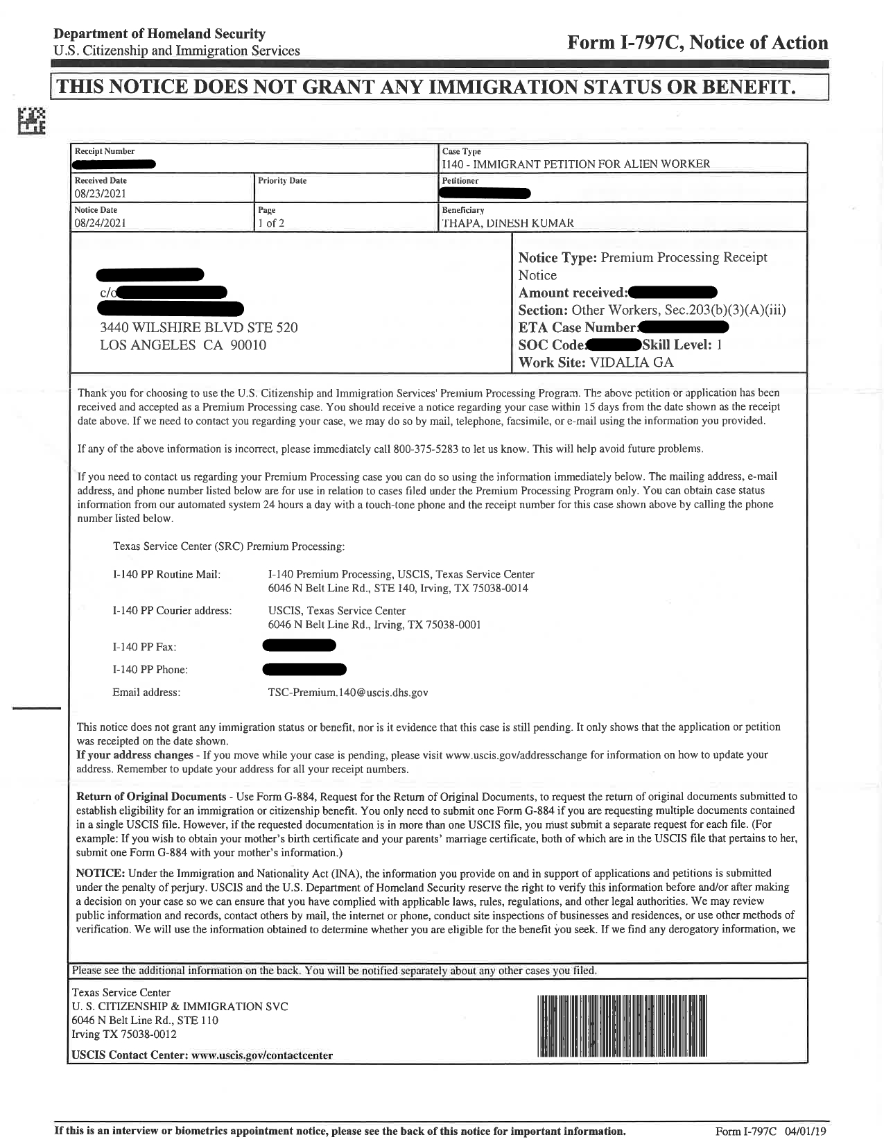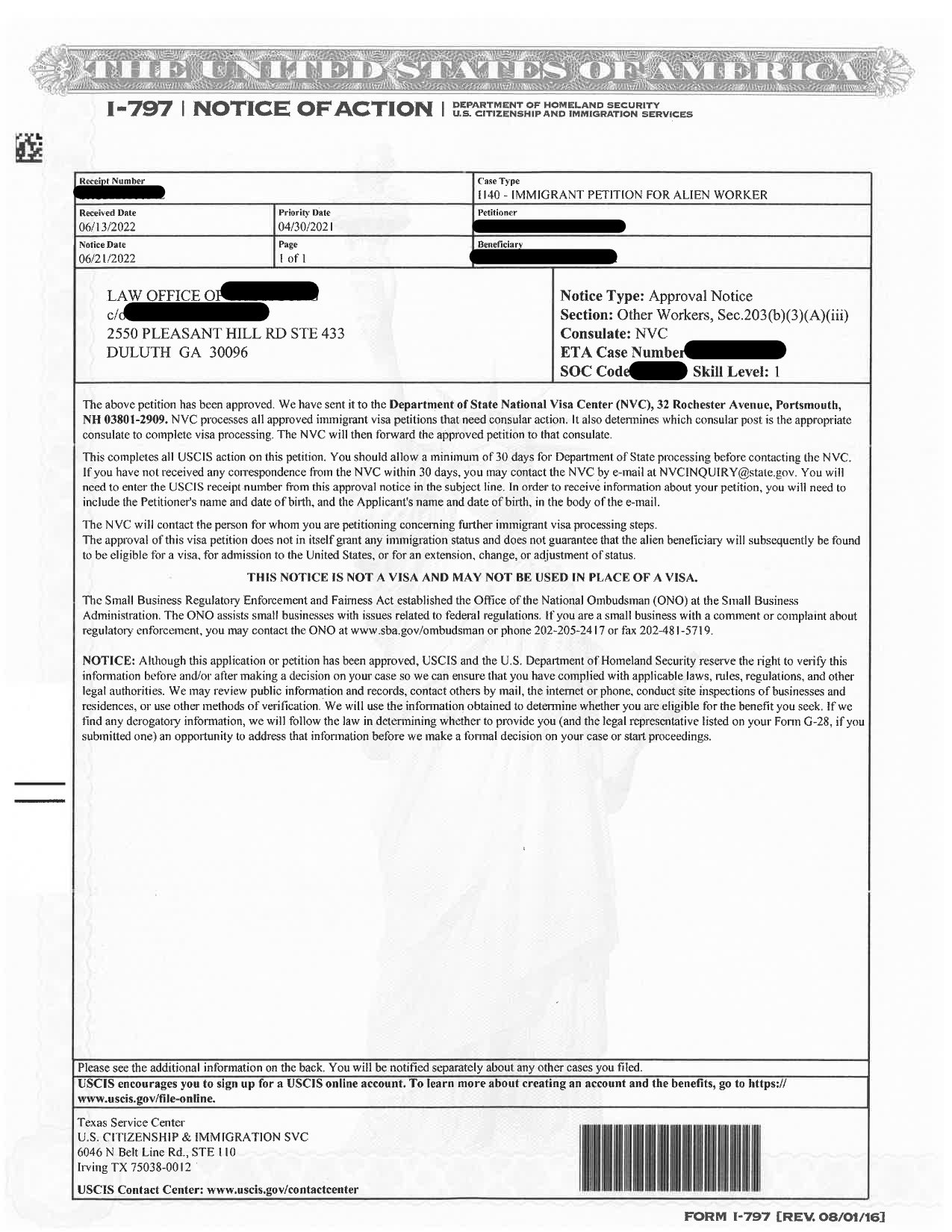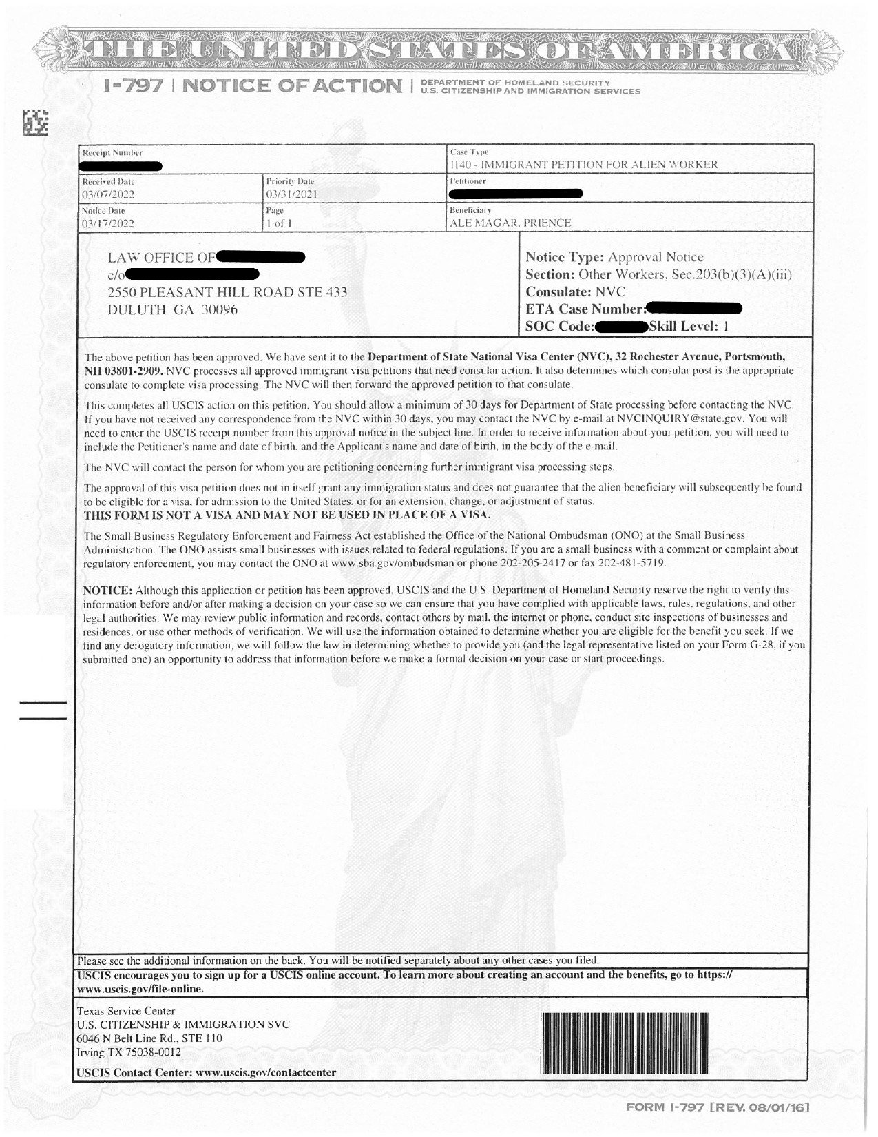Our Immigration company serve the best result. We congratulate our clients on the approval of their I-140 Alien Worker Immigration Petition by USCIS. We wish you a prosperous future ahead.